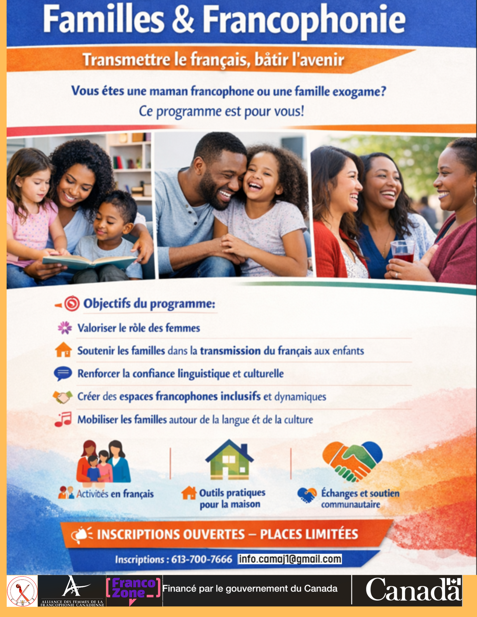 Places limitées – Inscrivez-vous dès maintenant. Tél: 613-700-7666 Courriel: info.camaj1@gmail.com
